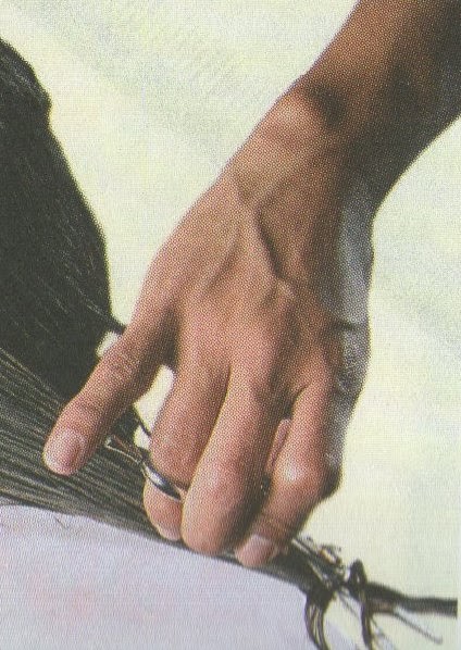 8-En la parte frontal se repite la misma técnica siguiendo el deshilado de la parte lateral.
