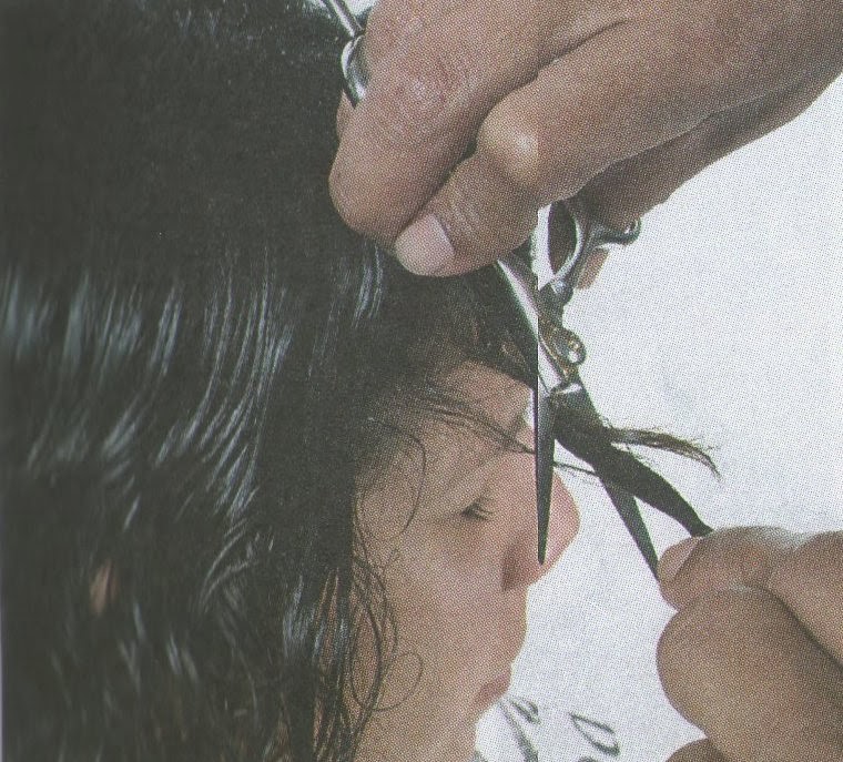 10-Para uniformar el flequillo con la parte lateral se utiliza una tijera de filo dulce y en las puntas se corta en zigzag.
