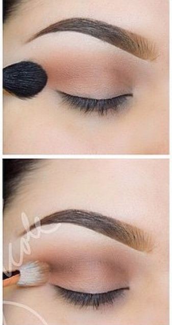 2.-Toma un pincel ovalado y aplica sombra color bronce mate sobre todo el párpado móvil y parte del párpado fijo. Difuma muy bien este paso.