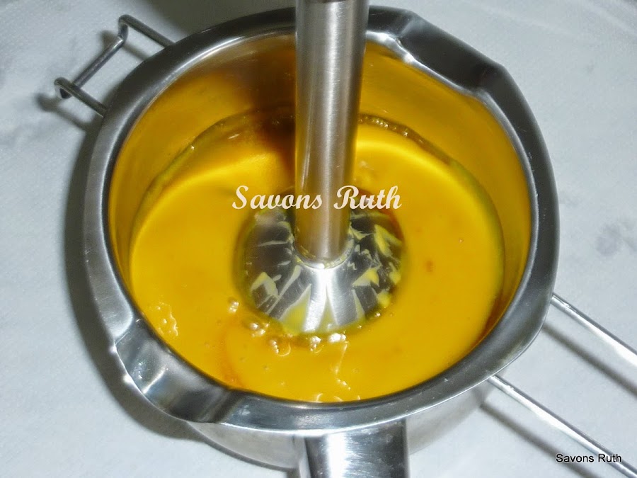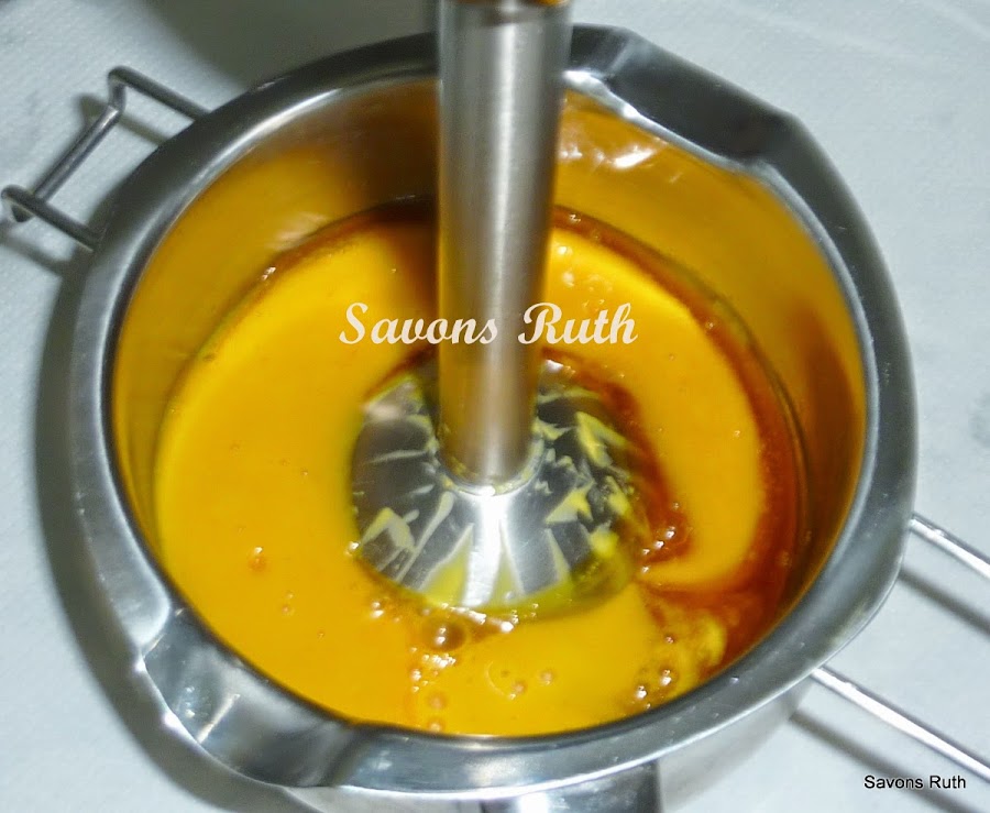 Colocamos todos los ingredientes a baño de maría y cuando este totalmente derretido batimos, esta vez tardara un poco mas en tomar consistencia.