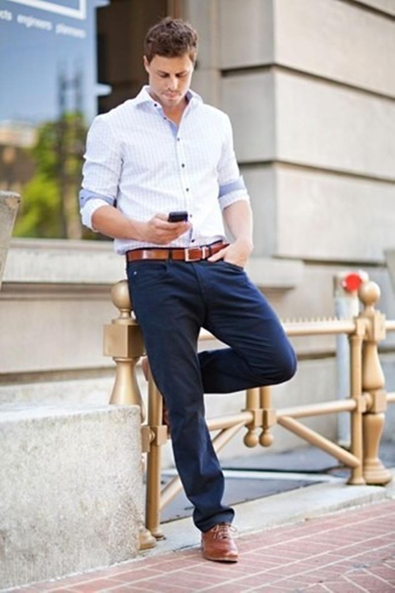 La clave para lucir un pantalón chino está en el color y el ajuste. El estilo del pantalón nunca debe ser demasiado largo o demasiado holgado, para que el pantalón pueda alargar la pierna y mostrar algo de forma.El ajuste perfecto de los chinos debe quedar por encima de las caderas, en la cintura natural y ajustarse alrededor de la rodilla y las caderas sin ser apretado. El pantalón debe estrecharse suavemente desde la rodilla hacia abajo y, a veces, ajustarse ligeramente alrededor del tobillo.