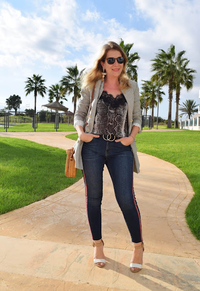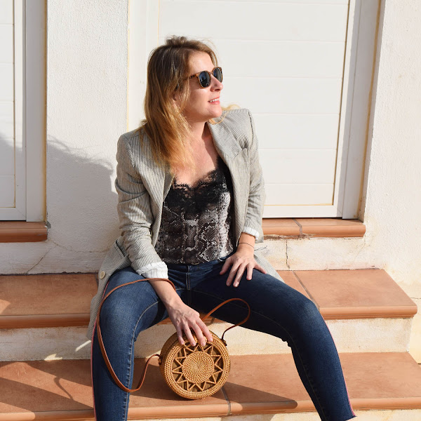 Es el caso del top lencero de hoy, con estampado serpiente. Con unos tonos discretos, en grises y negros, que pueden combinar con montones de prendas de las que ya tienes en tu armario.