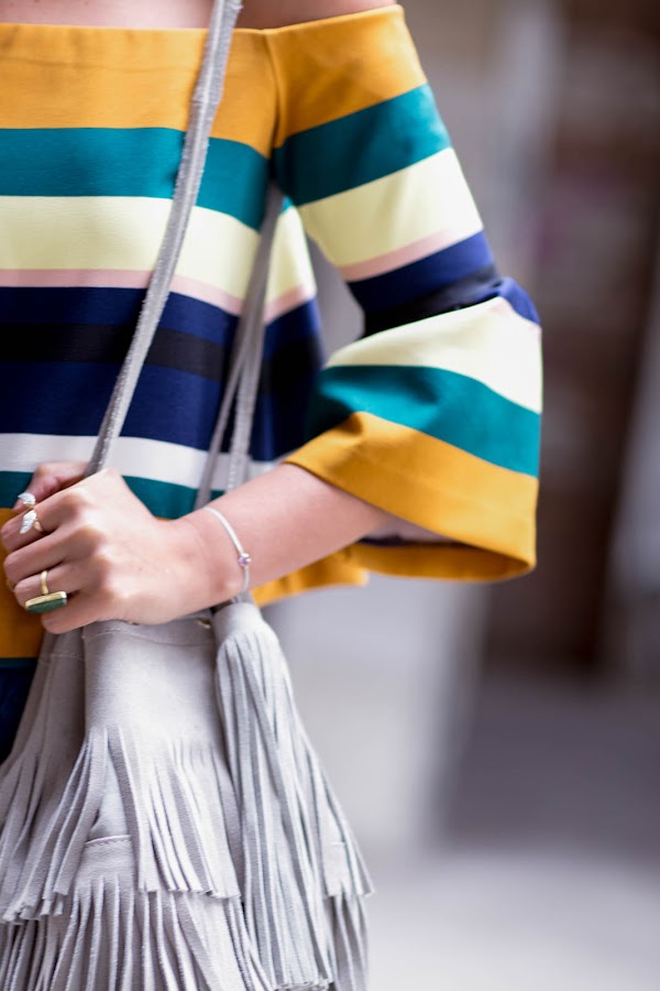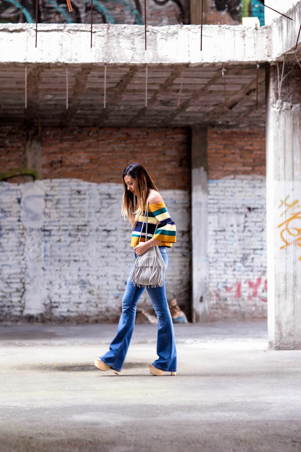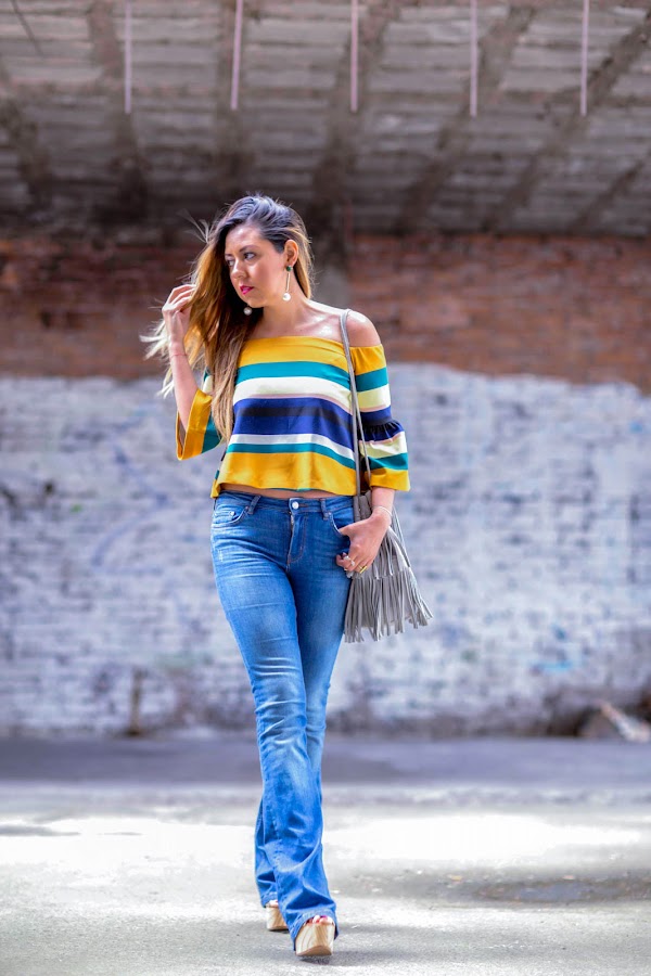 Combine unos pantalones acampanados que compre hace casi un año pero que están muy de moda y les cuento que seguirán así que aún es buena opción invertir en un par. Me enamore de la blusa sin hombros, otra de las tendencias fuertes para esta temporada, en cuanto la vi sabia que la debía de tener, me confié y cuando fui a comprarla no la encontré así que tuve que ir a varias tiendas hasta que la encontré. El bolso es el complemento perfecto para darle el toque boho al look junto con los hermosos zapatos de MILA MILU una marca orgullosamente mexicana que tiene diseños increíbles y calidad, son perfectos para crear looks veraniegos además de que por su plataforma son súper cómodos y nos agregan unos centímetros de más que nunca sobran.