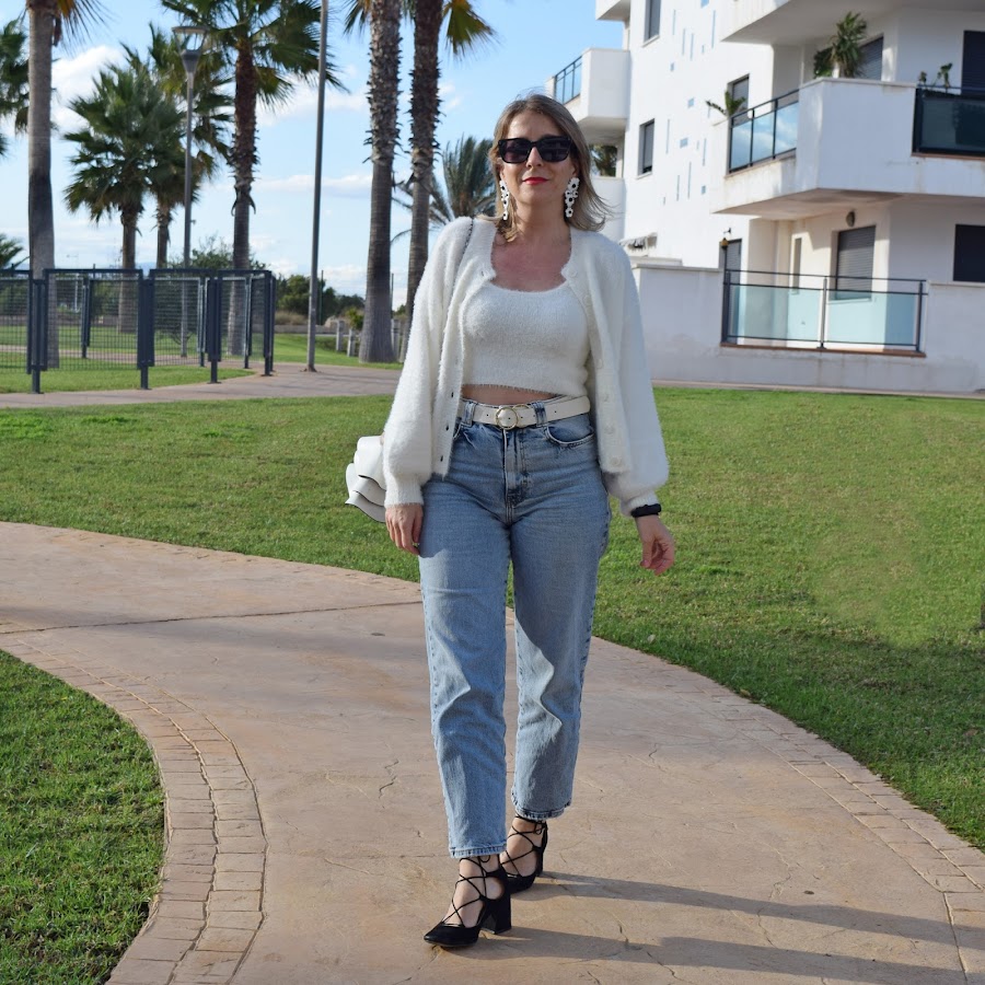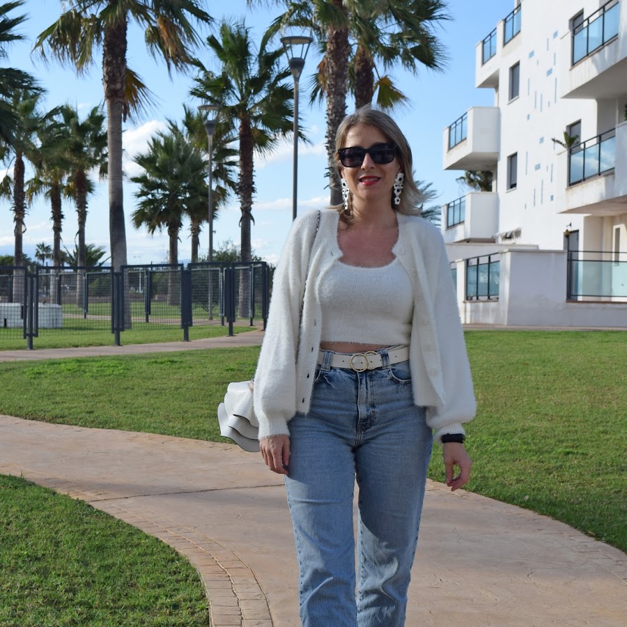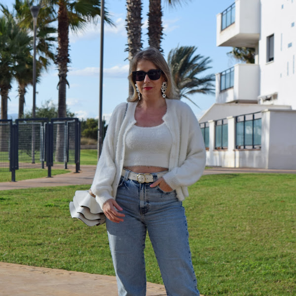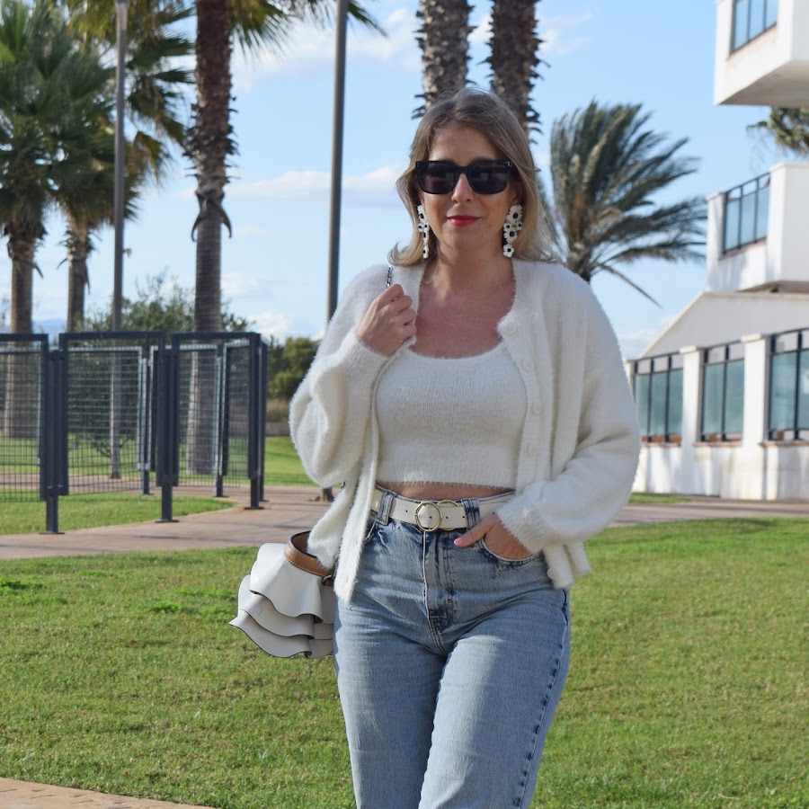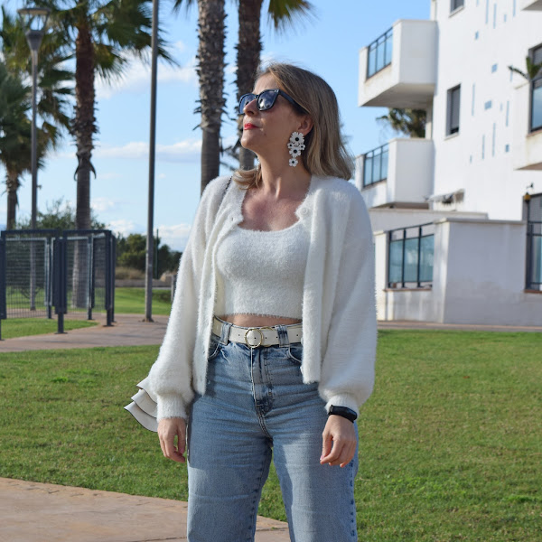 Me gusta mucho el largo de la chaqueta, en contraste con el top más cortito, perfecto para llevar con un pantalón de tiro alto y esconder todo lo que no nos gusta...