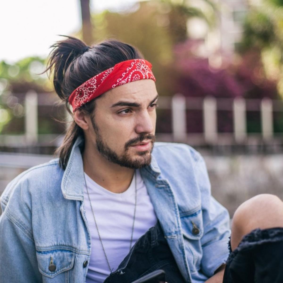 Esta forma de llevar un pañuelo también ofrece protección para la cabeza a cualquier hombre que sufra pérdida de cabello.