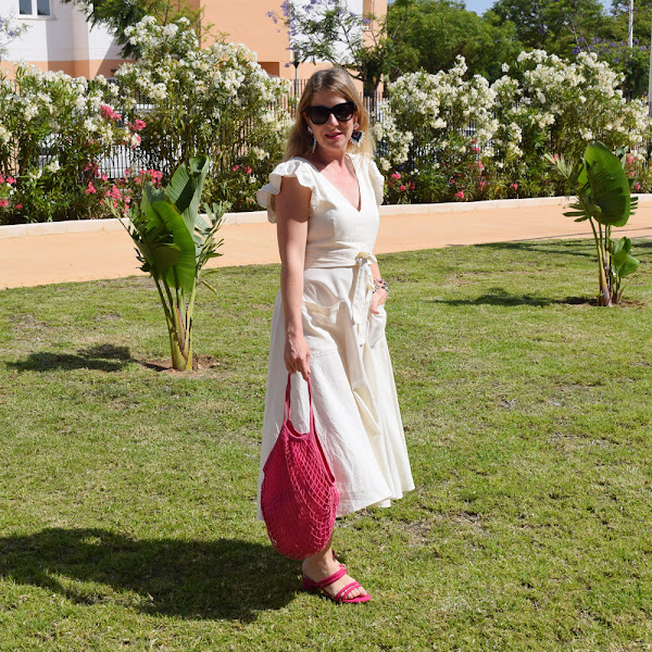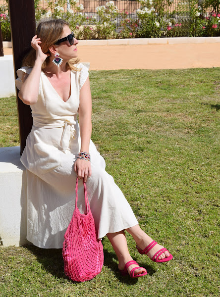 Con la base de los accesorios fue fácil encontrar un vestido que vaya bien. En este caso un vestido blanco, el mismo de este post, mi comodín de verano.