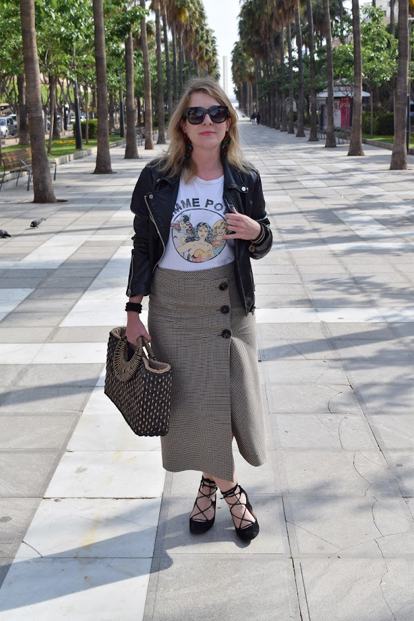 Sin duda es la forma de combinar la falda con camiseta y biker la que más me gusta, porque le quita ese toque más serio de oficina, para dar un resultado más desenfadado y cómodo a todo el look.