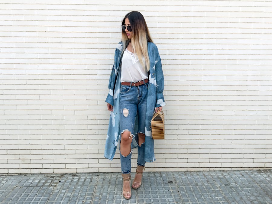 El protagonista de hoy sabréis cuál es nada más verlo y es que me quedé con la boca abierta desde que lo vi!! Creo que es el kimono más bonito que he visto en mi vida!! Es de SHEIN y me encanta! Me encanta el color, el estampado, la caída que tiene y las mil posibilidades de combinaciones que tiene. De color azul, con un estampado de pájaros blancos y un filo negro que hace un contraste precioso. Además, tiene unas aperturas laterales, que hace que el viento lo lleve donde quiera y que tenga esa caída tan bonita. Tiene un cinturón, pero yo he preferido no llevarlo, porque me gusta más llevarlo abierto, pero podéis anudarlo en la cintura.