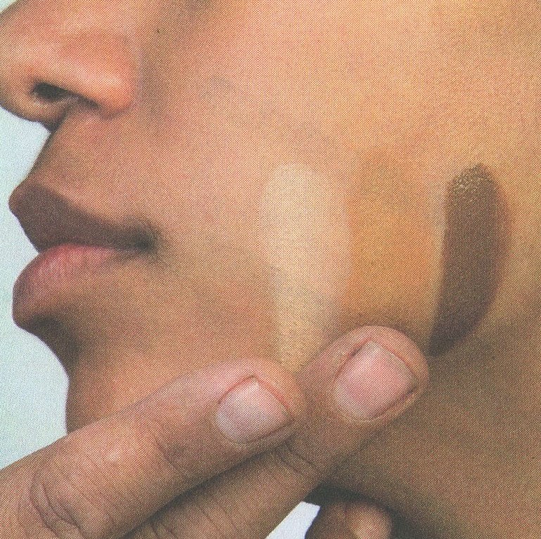 2-Base: Utilizar base según el color de la piel y difuminarla con pequeños toque citos en todo el rostro.