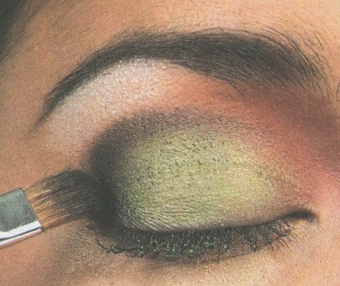 6-Aplicar una sombra oscura en todo el párpado móvil difuminar la sombra hacia arriba sin llegar al arco surperciliar.