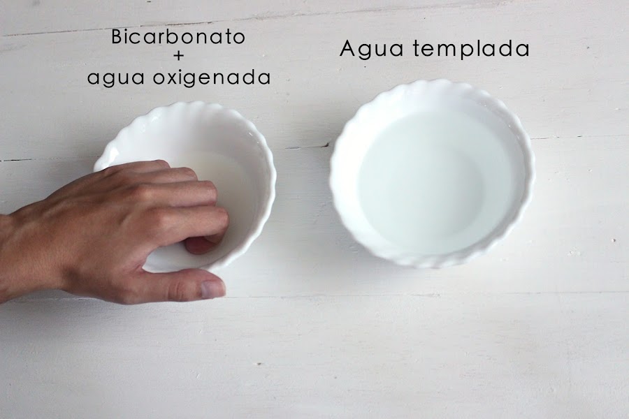 Para eliminar un poco el tono que da el esmalte a la uña y evitar que se pongan amarillas utilizo una mezcla de bicarbonato y agua oxigenada. Ya hice un post de esta mezcla con más detalles así que os lo dejo por aquí.