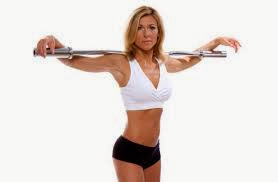 5. En la misma posición, de pie, dobla ligeramente las rodillas, manteniendo la espalda bien recta pero sin arqueate. Con la cabeza derecha mira hacia el frente. mantén la vara detrás de tus hombros y bájala hacia la derecha y hacia la izquierda como si quisieras llegar al suelo.