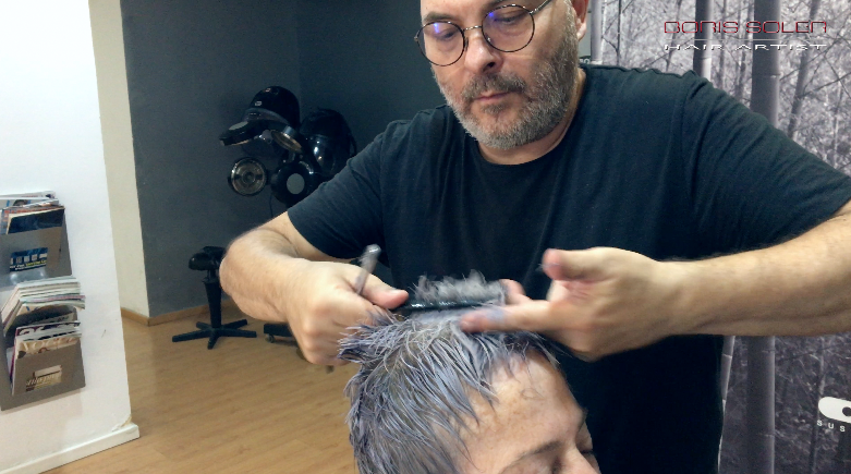Os explico como pasar una cabello castaño medio, natural, a un color muy de moda como es el Gris. Empezaremos con una decoloración a 20 vol. con tiempo de exposición de 50 m. en zona de calor, este proceso es muy diferente en cada cabello, si no conseguimos llegar al color amarillo o blanco que deseamos debemos enjuagar la decoloración y volver aplicar otra con 10 vol. Una vez conseguido el colo ...