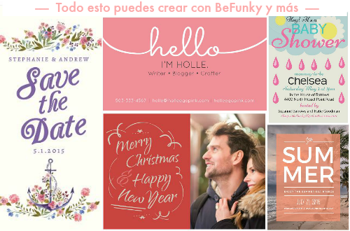 Pero eso no es todo lo que hace BeFuncky, con esta herramienta también puedes hacer infinidad de cosas como un profesional, puedes hacer collages, crear invitaciones, menús, tarjetas de felicitaciones, infografias, tarjetas de presentación, entre mil cosas más. Todo esto gracias a sus plantillas prediseñadas, así no tendrás que romperte la cabeza pensando en el diseño.