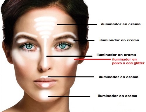 En la foto podéis apreciar los puntos estratégicos donde se debe aplicar el iluminador