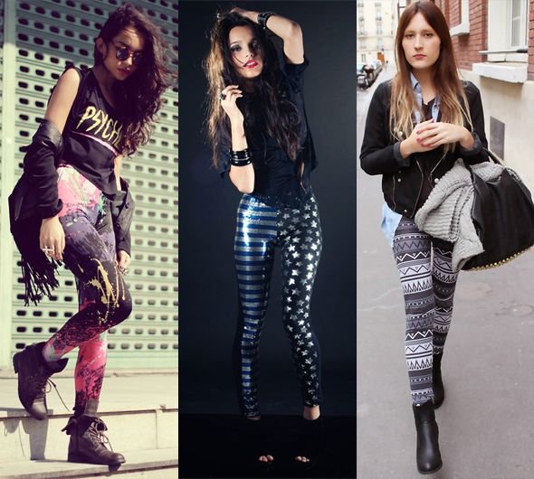 Últimamente se volvieron populares texturas como la galaxia, banderas de países, cuadros, militar. También puedes utilizarlos con blazers, shorts encima, mini faldas encima, etc. La idea siempre es tapar tus glúteos ya que no son pantalones y marcan de mas.
