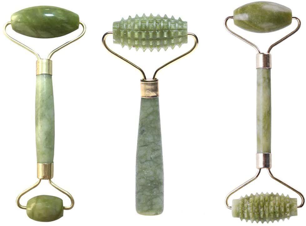 El rodillo de piedra de Jade con doble cabeza una grande y otra pequeña cubre más necesidades. El lado pequeño es más fácil de maniobrar alrededor de los ojos, la nariz y la boca y la cabeza más ancha para áreas de mayor cobertura como la frente, mejillas y cuello.