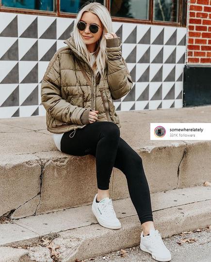 Para esos días soleados de invierno en los que puede que sea lo suficientemente cálido como para tener los tobillos expuestos, opta por tus zapatillas blancas favoritas, leggings negros y un abrigo acolchado para lograr esa combinación perfecta de comodidad y frescura.