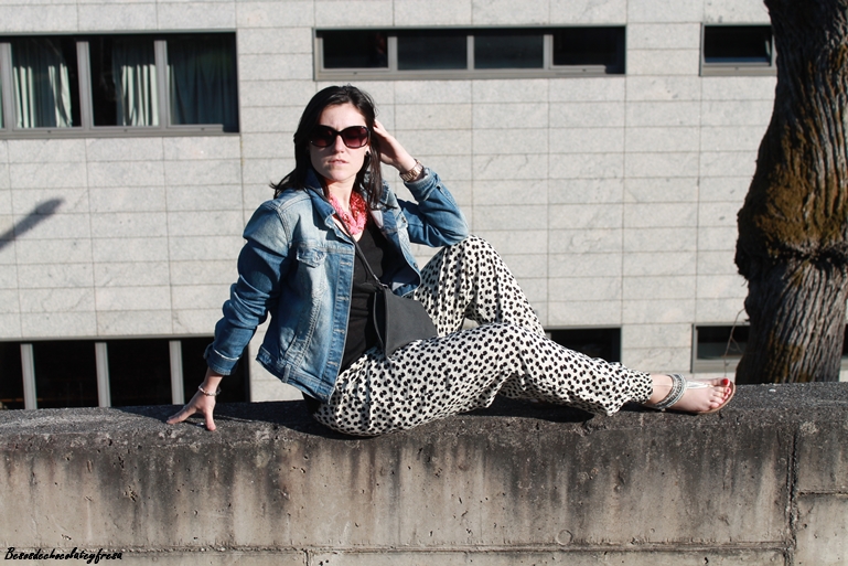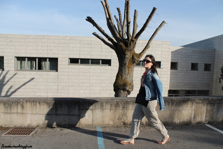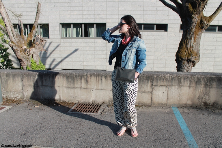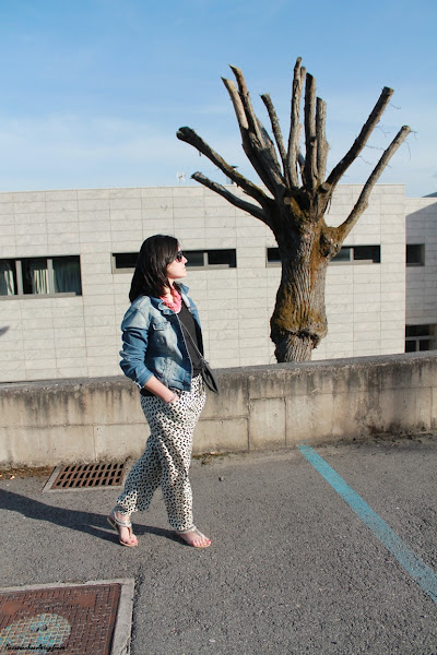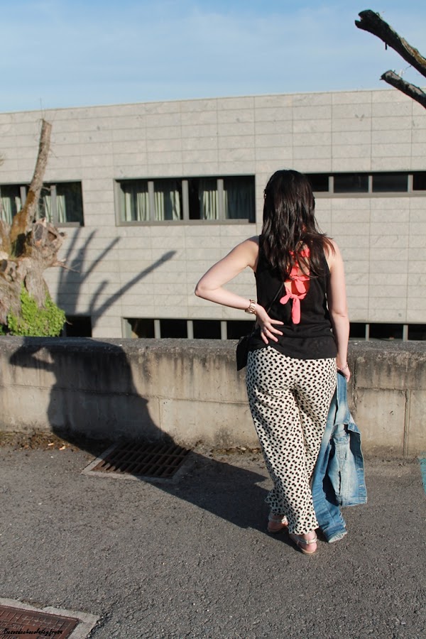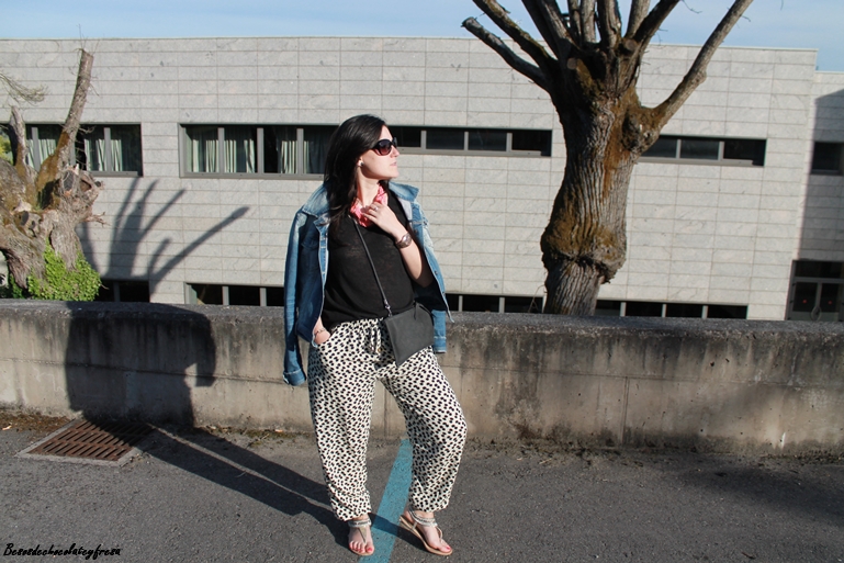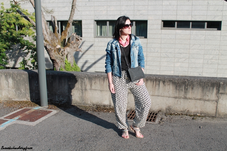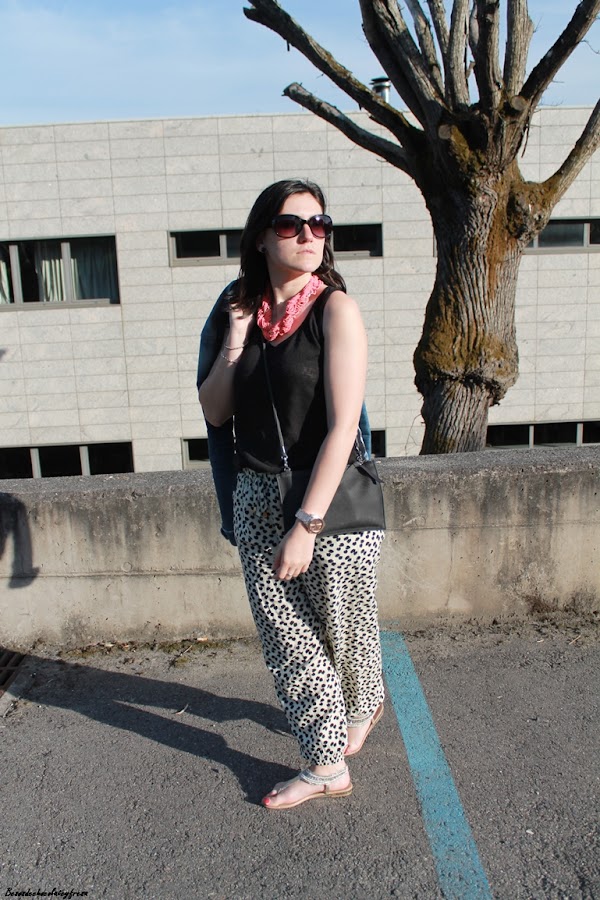 Hoy os muestro un look para un día ajetreado de recados, porque pare ello a lo que más recurro es a ropa cómoda, fresca y holgada. Para esta ocasión me puse mis pantalones bombacho con estampado animal print y elásticos en cintura y puños de los tobillos.