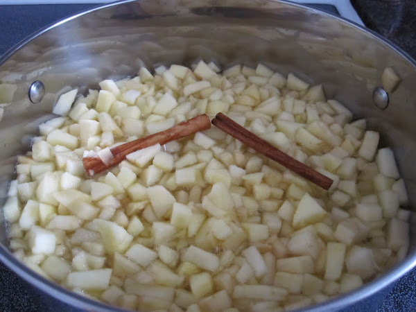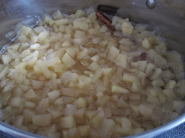 Cocinamos a fuego medio-bajo, hasta que las manzanas adquieran un color mas transparente y estén blanditas (media hora, más o menos). Hay que estar atentos durante la cocción para que no se nos quede sin agua.
