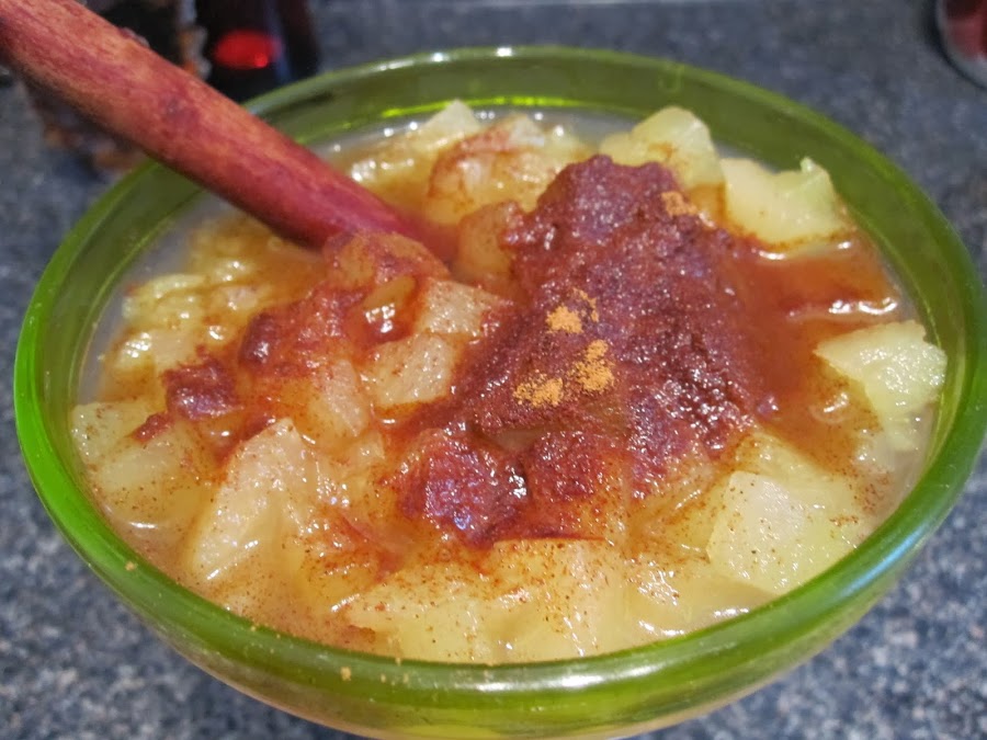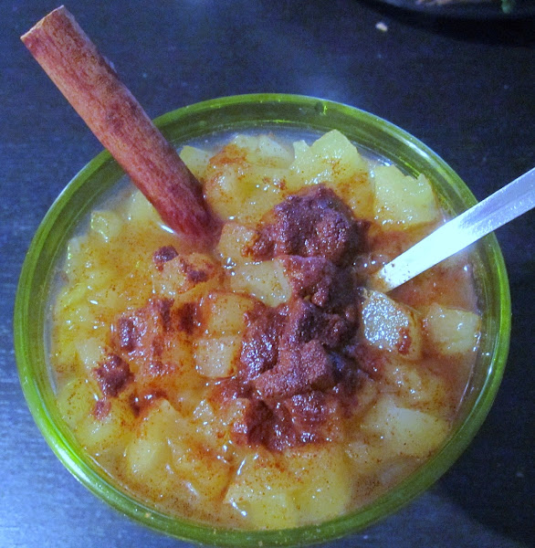 Espero que podáis apreciar la diferencia entre la manzana cruda ( primera foto ) y la manzana cocida ( segunda foto ). Si os fijáis atentamente, en la primera foto, la manzana es mas amarilla y en la segunda mas transparente y caramelizada.
