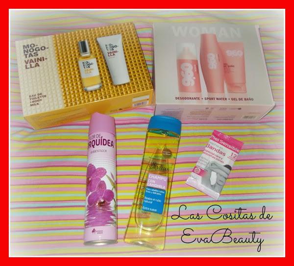 (Estuche vainilla, estuche woman, ambientador, champú camomila y bandas cera facial Deliplús por Las Cositas de EvaBeauty)