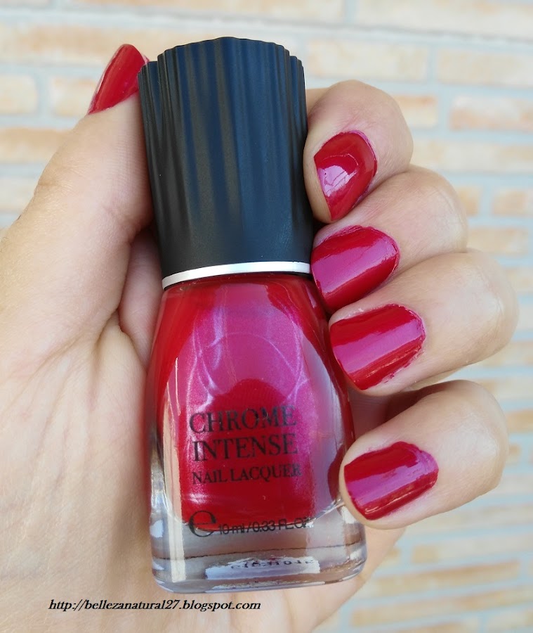 Y por último, los esmaltes de uñas Chrome Intense. Los vi en el stand y me encantaron pero como tengo un montón, decidí comprar los que sabía que me pondría si o si, en este caso los tonos 02 Precious Amaranth y 03 Shady Grey. Ambos tienen una cobertura fantástica y unos tonos súper intensos. En cuanto al secado, no son de los que se secan más rápido, pero tampoco de los que tardan mucho en hacerlo. Ambos esmaltes tienen unos bonitos destellos que hacen que según la luz, se vean de un color u otro. El rojo puede verse un poco fucsia, y el gris queda un poco como gris tirando a negro metálico. Son súper especiales y muy muy bonitos. En cuanto a la duración no es nada del otro mundo, a mi me duraron perfectos un día, al siguiente se me empezaron a descascarillar un poquito de la punta, eso sí, sin usar Top coat antes ni después. Supongo que aplicando una capa de Top Coat su duración mejorará mucho. Aún así, me parecen unos esmaltes que hay que probar sí o si. He intentado que se vean lo mejor posible en las fotos pero es difícil captar los destellitos. Creo que tendré que pedir una cámara mejor para reyes. Je je!