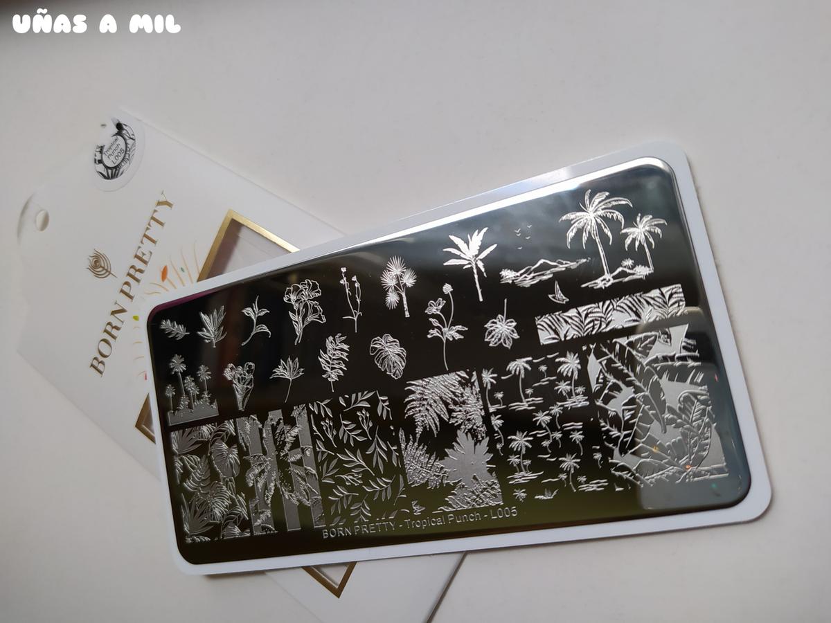 Placa de estampación ideal para el verano con diseños de palmeras, hojas tropicales… https://www.bornprettystore.com/born-pretty-rectangle-nail-stamping-plates-high-quality-tree-leaves-tropical-stamp-texture-l005-p-49337.html