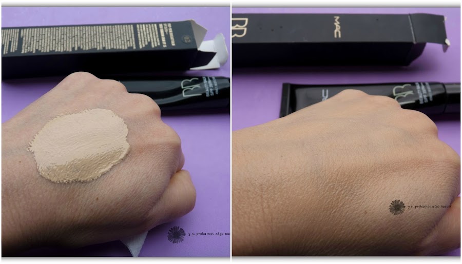 Esta base la compré en la misma tienda y tampoco está disponible pero la he visto en esta otra tienda y a un precio similar, 3,41€. La marca es MRC, parece que pone mac pero no. Es una base ligera que deja un resultado muy natural. El mío es el tono 2 para que te hagas una idea. Me gusta mucho el dispensador, es un tubo pero lleva un dispensador de los que pulsas para sacar el producto y es muy fácil y limpio dosificar.