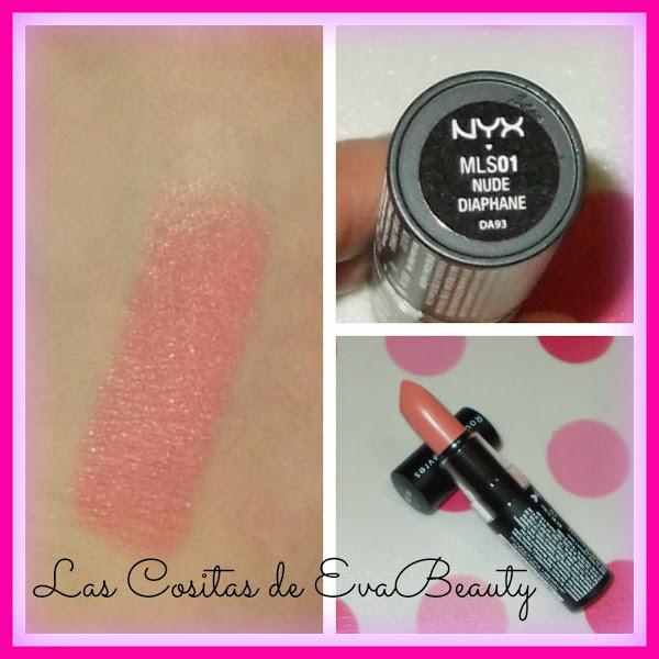 (Swatch labial mate Nyx NUDE DIAPHANE MLS01 por Las Cositas de EvaBeauty)