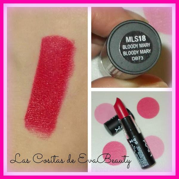 (Swatch Labial Mate de NYX BLOODY MARY MLS18 por Las Cositas de EvaBeauty)
