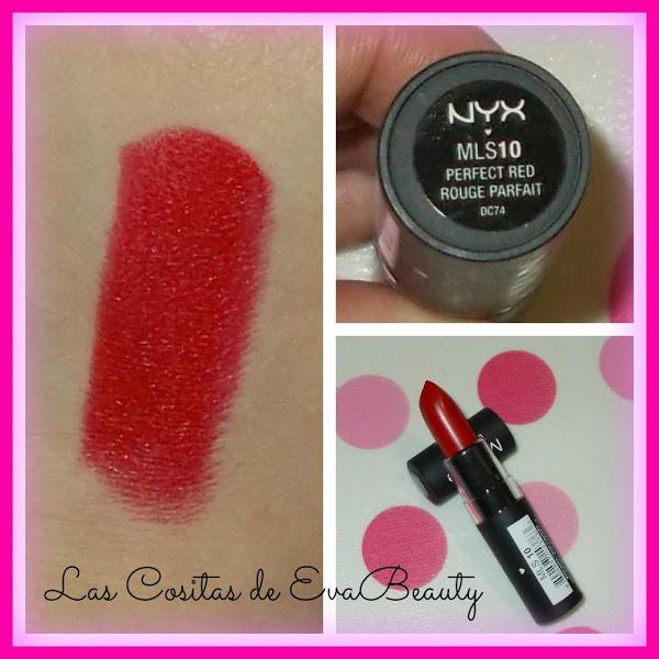 (Swatch Labial Mate de NYX PERFECT RED MLS10 por Las Cositas de EvaBeauty)