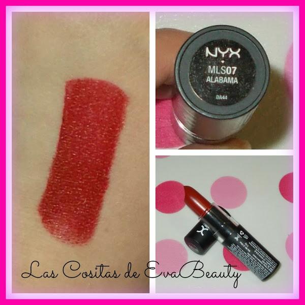 (Swatch Labial Mate de NYX ALABAMA MLS07 por Las Cositas de EvaBeauty)
