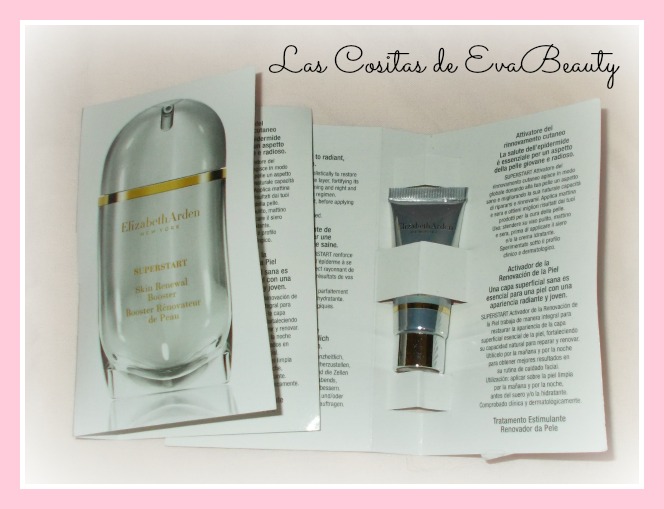 Y la chica que me atendió, fué super amable y me regaló 2 muestras del tratamiento SUPERSTART de Elisabeth Arden, que es un activador de la renovación de la piel.