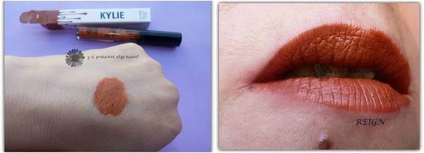 Este labial fijo metalizado pretende ser el tono reign de Kylie y no tiene nada que ver, aunque me ha gustado mucho, dura bastante y no reseca tanto como los anteriores. He reclamado al vendedor porque no es el mismo tono me ha devuelto el 40%, costaba 1,48 pero me ha salido por 0,89. Es un tono entre marrón y naranja, no sé si se aprecia bien en la foto.