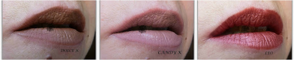 Estos labiales son imitación a la colección de Kylie del año pasado, aunque los tonos no se parecen mucho. Son minitallas y de los 6 creo que voy a usar sólo 2 porque los otros no me convencen. Son fijos y mates y se secan enseguida, tienen un olor a dulce, no sé muy bien si a vainilla. No aguantan demasiado, en unas 3-4 horas se empiezan a cuartear y resecan un poco. Me costaron 2,96 y el enlace os digo lo mismo que el anterior.
