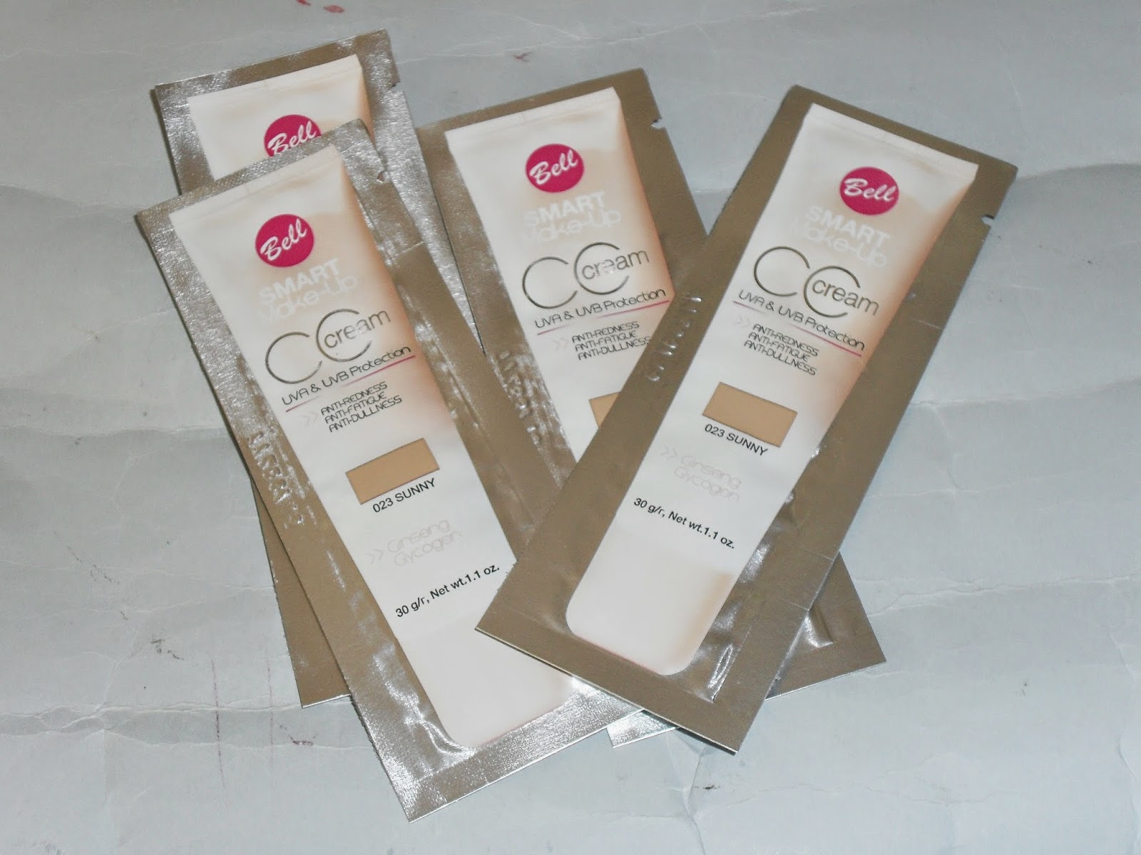 - Unas muestras de la CC cream de Bell que me han dado para varios días y por lo tanto para hacerme una idea del producto, en el tono 023 Sunny, es el tono más oscuro de todos y aunque en principio pensaba que se quedaría claro, ya que todos los tonos que creo que son 4 son bastante claros, pero una vez puesta se asentaba bien con mi piel y aunque quizá fuera algo clara luego con unos polvos bronceadores quedaba un tono que me gustó mucho, tiene un acabado ligero, satinado, hidrata la piel y bueno como la mayoría de estos productos a mi me gustan mucho porque me gustan los acabados y poco cubrientes y que den luz en la piel pero esto ya es una cuestión muy personal.