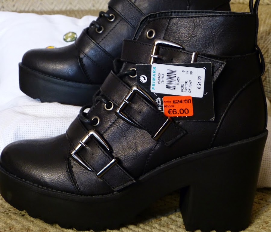 Estos botines que me encantan, aunque tengo un problema con el calzado del Primark: porque pasa de la talla 39 a la 40/41? ¿No puede haber una 40 y otra 41? Yo en Primark calzo la 40 y no la hay, asique tengo que llevar unos justos o los otros grandes!!! En fin... lo mejor de todo es el precio, porque para mi no es que estuvieran de oferta, es que estaban tirados, os voy a poner una foto del precio porque una imagen vales más que mil palabras: