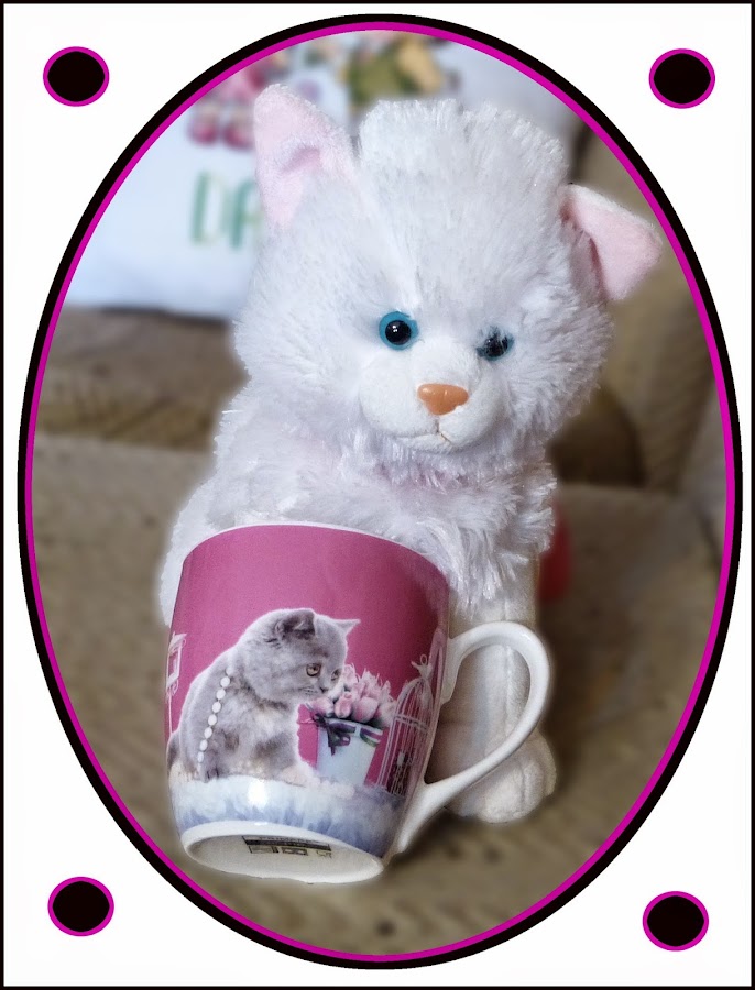 La verdad que no necesito tazas pero los que me conozcáis bien sabéis por que la he cogido... y es que me encantan los gatos! y esta taza es tan mona!!! Precio 2â?¬, no sé cuantos mililitros llevará pero me parece más ancha que las normales.