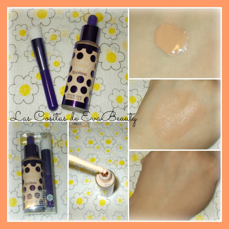 Y el otro producto que cogí fué ésta base de maquillaje, es la Youthful Wear Spotless, y cogí el tono más claro, el tono light... pero si véis el swatch tiene un tono también un poco subido y me asusté también un poco al ver el color.