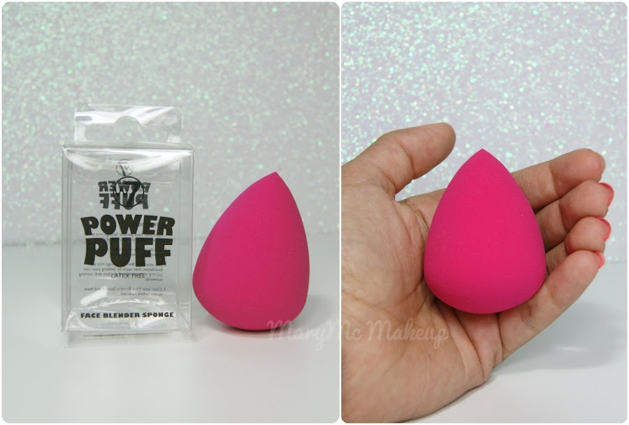Esponja Power Puff W7 (1.99€). Imitación de la Beauty Blender, tiene el mismo tamaño, solo que con "el culo más gordo". Es bastante más dura, no sé que tal irá en mojado pero cuando la pruebe os cuento.