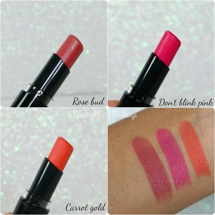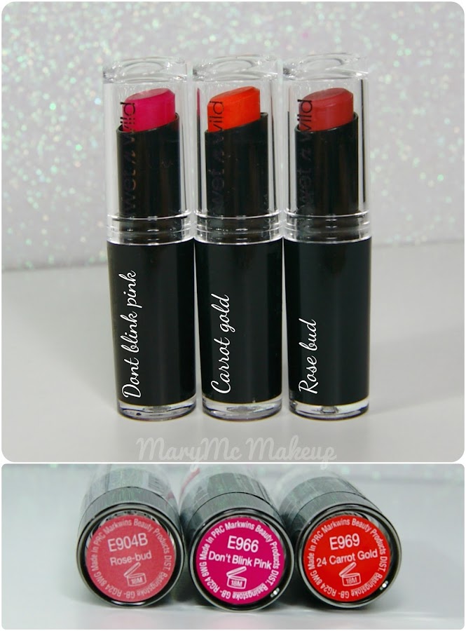 Labiales Megalast Wet n Wild (2.99€). Estaban en promoción de 3x2. Buscaba los nuevos tonos, en concreto el Don´t blink pink, un fucsia neón precioso; y el Carrot Gold, un naranja butano que quita el hipo jaja y además me pillé el Rose Bud, un rosita amarronado muy bonito para diario. Poco hay que decir de éstos labiales, a mi me encantan, si queréis que os enseñe los tonos que yo tengo y swatches me lo dejáis en comentarios :)
