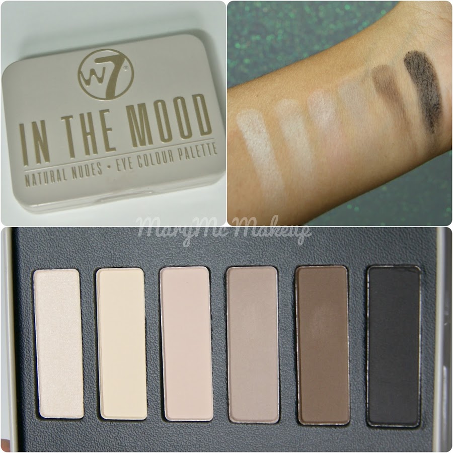 Paleta In the mood W7 (3.75€). Imitación de la Naked Basics, el packaging es una cajita de metal pero no pesa nada, las sombras como véis son iguales peeero...la pigmentación es bastante floja, son un poco tizosas aunque en el ojo se trabajan mejor.