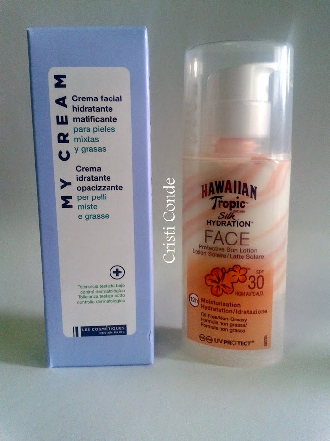 También me compre esta crema matificante para pieles mixtas grasas de Les Cosmetiques, su precio fue de 2? por lo que para probar esta bien. Y cotilleando vi este protector solar facial de Hawaiian Tropic de protección 30, me gustaría que fuera de 50 pero que le vamos a hacer, sinceramente no sabia que esta marca tenia protector solar facial y como es una marca que amo profundamente pues tuve que comprarla. Es una crema un tanto cara pero vale la pena por la calidad que suelen tener los productos de esta marca, su precio fue de 8,95? y trae 50ml y también me la compre en Carrefour.