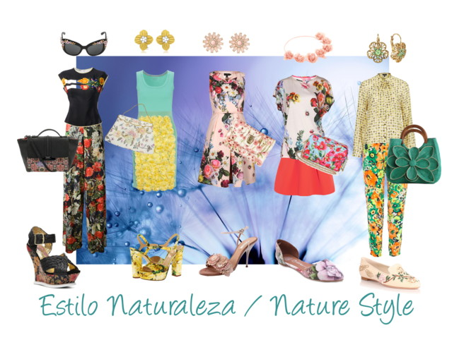 Inspired by flowers, greenery and nature, this style is present in prints, trimmings and applications. We will find in it flowers of all types and sizes, as well as tropical or jungle vegetation and leaves, in plenty of clothing and accessories.