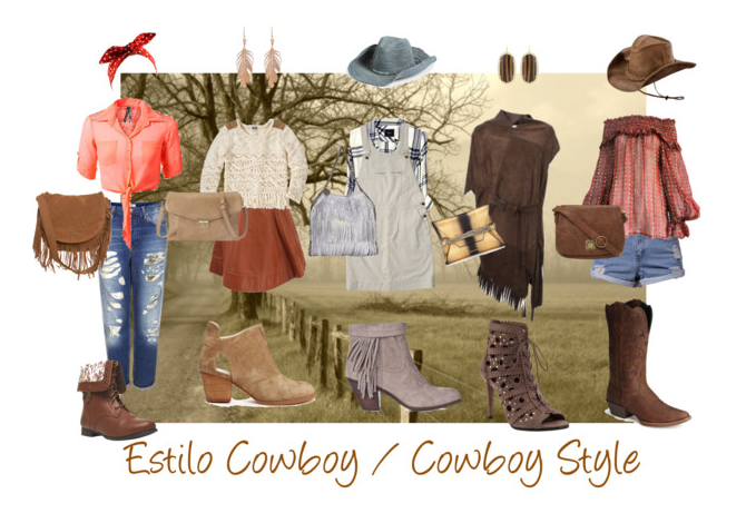 Wild West transcends fashion with proposals that evoke the dress of cowboys. In this style is notable the Texans hats, neckerchiefs, earth tones, leather and suede as fabrics, denim shirts, big fists, boots and fringed clothes.