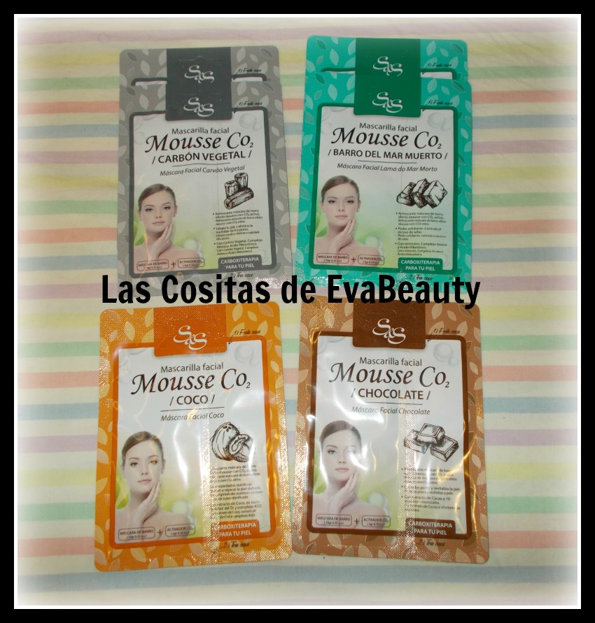 Son unas mascarillas faciales con dióxido de carbono, contiene dos partes, una con la máscara de barro y otra con el dióxido de carbono que hay que mezclar. Son en textura mousse.