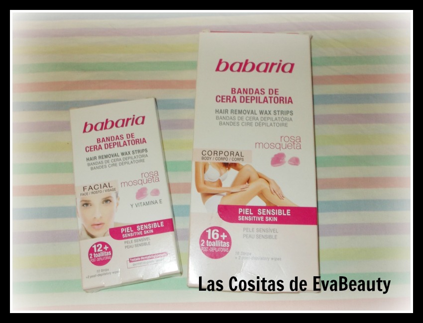 Estaban en oferta las bandas de cera de Babaria de rosa mosqueta, así que cogí un paquete facial y otro corporal para probarlas.