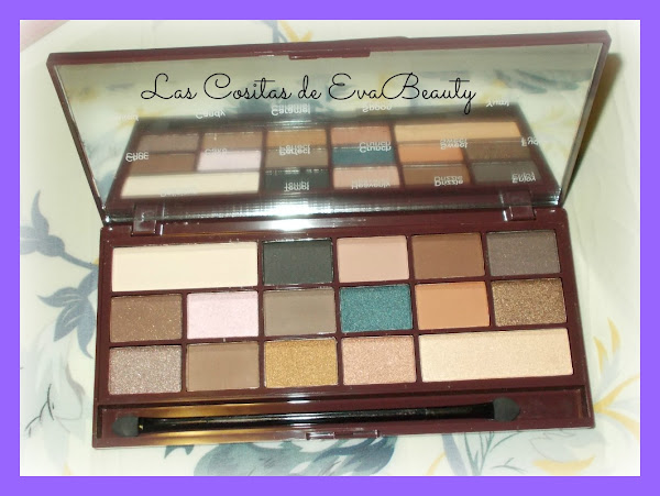 Y también cogí la paleta I Heart Chocolate Salted Caramel. También contiene 16 sombras (mates y con shimmer), tiene un espejo grande frontal y el pincel doble de esponja.