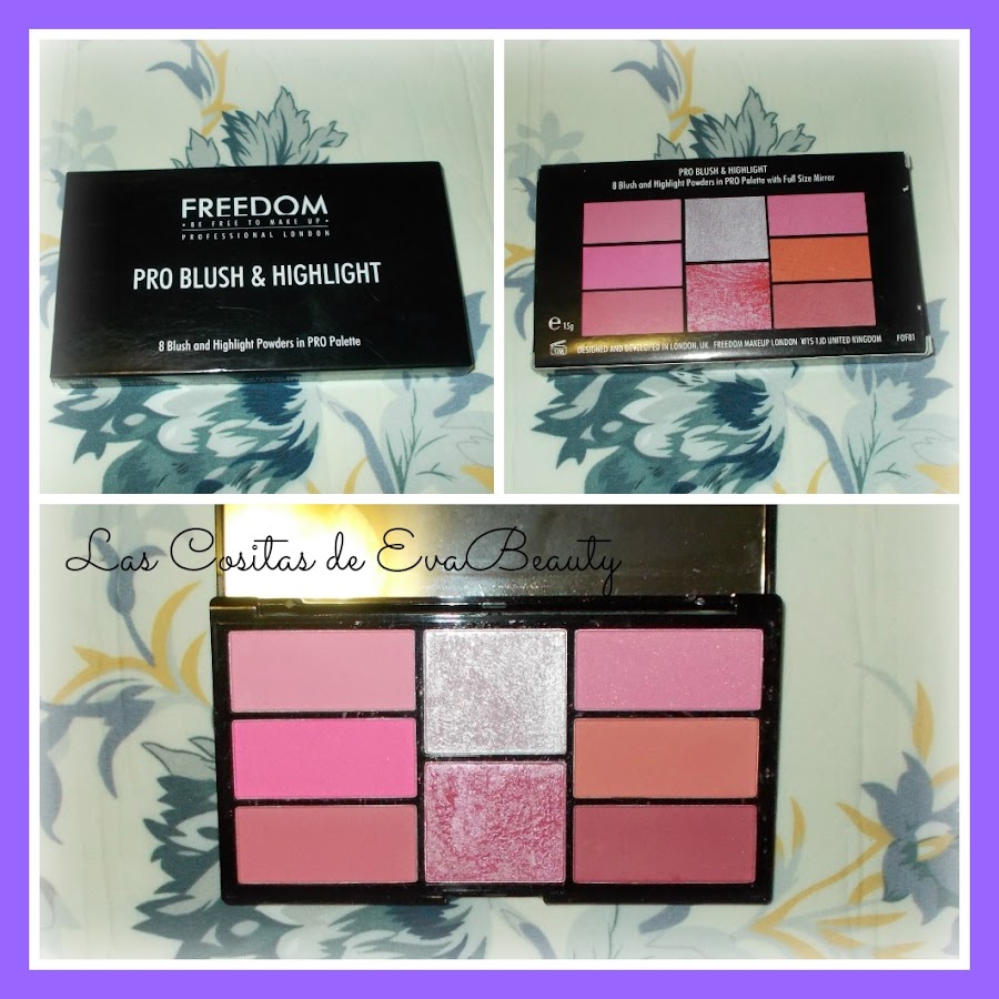 Y aprovechando el 3x2, ya que ésta paleta me salió gratis, me apetecía probar algo de la marca FREEDOM, ya que no había probado nada hasta el momento, y me decanté por ésta paleta tan completa de coloretes, vienen 6 (son los de los laterales) y 2 iluminadores (los centrales), son en textura polvo.